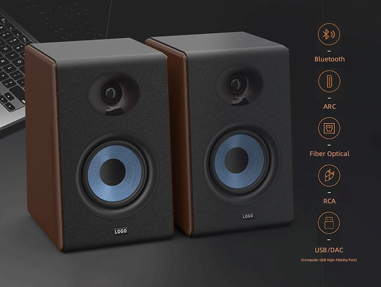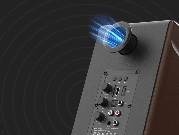 This 2.0 dual-channel HI-FI bookshelf speaker, with its powerful 80W power, effortlessly creates a wide and detailed soundstage, delivering a cinematic auditory feast. The speaker features an integrated full-interface matrix, compatible with Bluetooth, ARC audio return, optical fiber, RCA, and USB-DAC high-fidelity connections (with direct USB output from a computer), making it easy to pair with a variety of audio sources, expanding the possibilities for both home entertainment and professional listening.