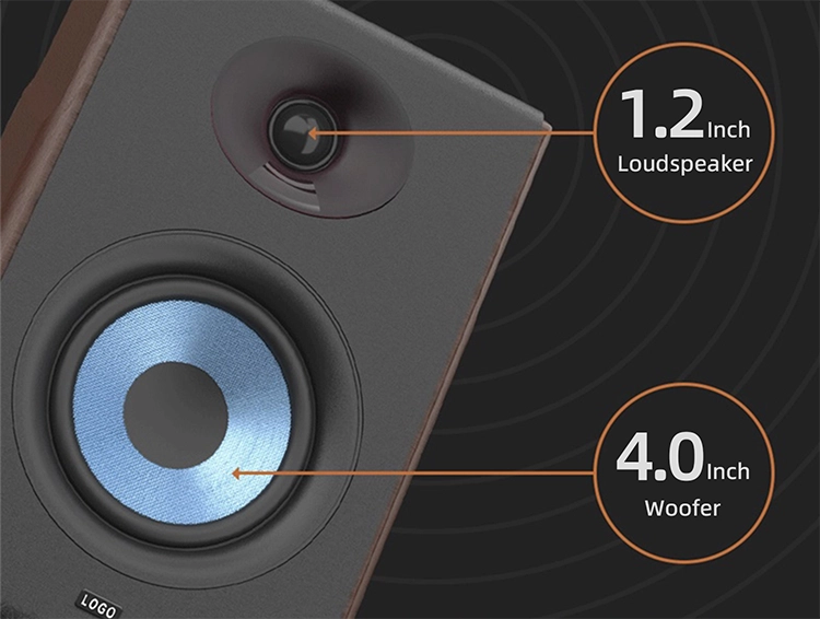 Powered by high-precision professional tuning and DSP digital audio processing, this 2.0-channel Hi-Fi bookshelf speaker delivers a stable output of 40W + 40W (80W total), an 80dB signal-to-noise ratio, and a frequency response of 35Hz–20kHz, ensuring high-resolution sound reproduction. The system utilizes a 1.25-inch tweeter and a 4-inch (116mm) dynamic woofer. The metal diaphragm enhancer and the air circulation design inside the bass tube effectively extend the bass and control cabinet resonance, resulting in rich, natural bass and crisp, clear high-end detail.