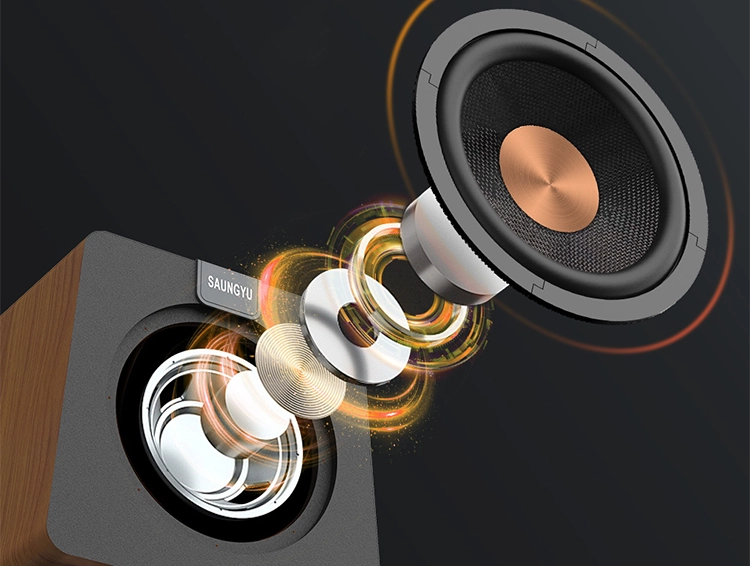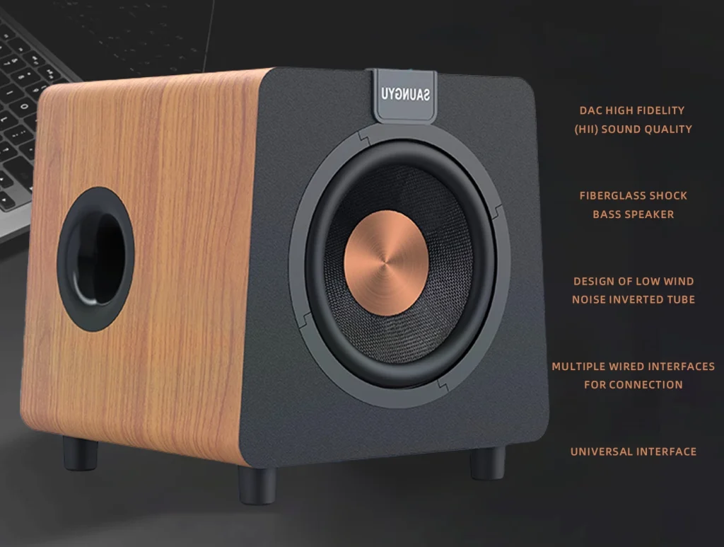 Powerful configuration for stunning sound quality.The SAUNGYU bass system is built upon a professional acoustic R&D philosophy, integrating high-performance DAC decoding with precise acoustic structure design to deliver a powerful and pure sound. Its built-in Hi-Fi DAC audio processing module effectively reduces distortion and signal noise, reproducing every detail and dynamic in the music. Utilizing a high-strength fiberglass diaphragm bass unit, it possesses excellent rigidity and sensitivity, outputting deep, powerful bass with rapid transient response. The low-noise bass reflex port structure undergoes acoustic optimization design, significantly reducing airflow noise and ensuring more stable and deeper bass. The system is equipped with multiple wired input interfaces and compatible universal ports, supporting connections to various audio source devices for a highly stable and high-fidelity audio transmission experience.
