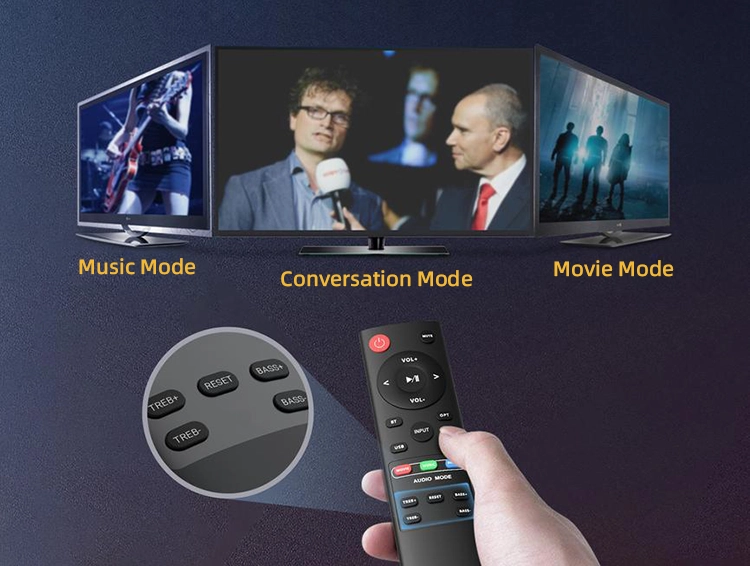 This 2.0 dual-channel Hi-Fi Bluetooth soundbar delivers clear, pure, high-fidelity sound. With a powerful 120W output, it provides a immersive, cinematic audio-visual experience.